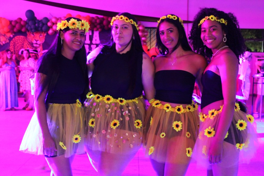 Com o tema onça e caju, a festa ganhou ainda mais cor e diversão com as fantasias das participantes. A criatividade tomou conta do salão, com grupos e personagens variados, como turminha do Táxi, Anos 60, onças, gatinhas, M&Ms, anjinhas, FBI, super-heroínas, IT- A Coisa, fadas, Carmem Miranda, bailarinas, Coringa, coelhinhas, Malévola, abelhinhas e até uma divertida fantasia de mãe e filha bebê de Avatar.