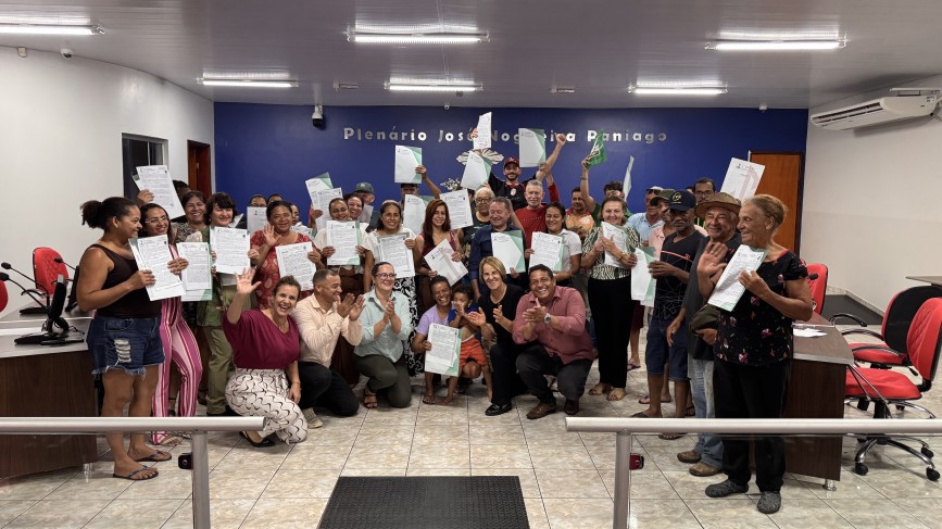 A Prefeitura de Água Boa (MT), por meio da Secretaria Municipal de Desenvolvimento Econômico, Agricultura e Turismo, realizou na noite desta segunda-feira (16), a entrega de mais 60 títulos de regularização fundiária urbana através do Programa REURB, beneficiando moradores dos bairros Universitário, Cristalino, Vila Nova, Operário e Primavera.