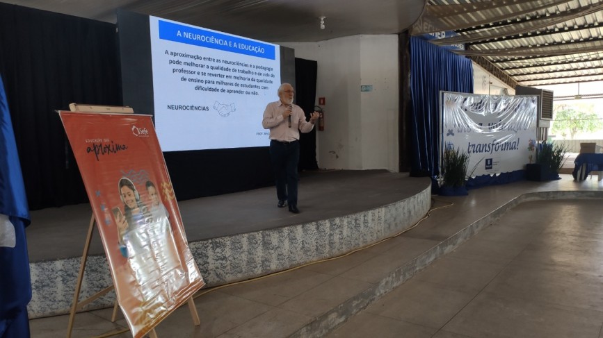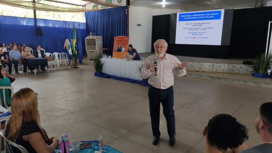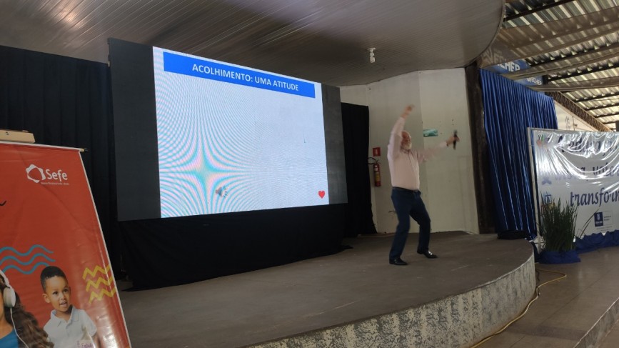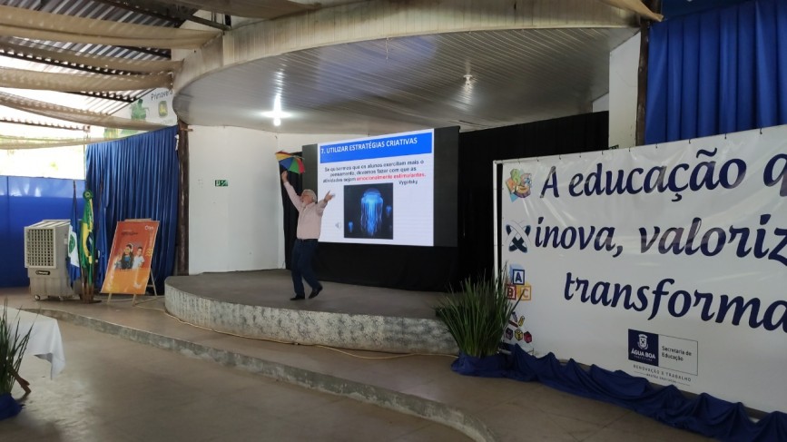 O Professor e palestrante Nino Paixão, fez a abertura do seminário com o treinamento "Ensinando e aprendendo com prazer: A neurociência entra em ação." Na segunda parte, Viviane Donadel falou sobre Inclusão.
