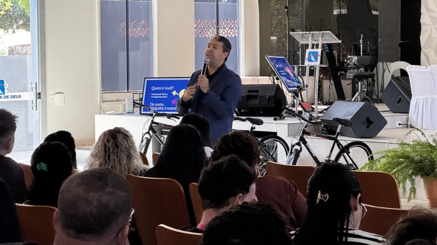 Na sequência, o palestrante Israel Boniek abordou o tema “O sentido de ensinar: quando o currículo encontra a vida”, destacando o papel transformador da educação e a importância de conectar o conteúdo à realidade dos estudantes.