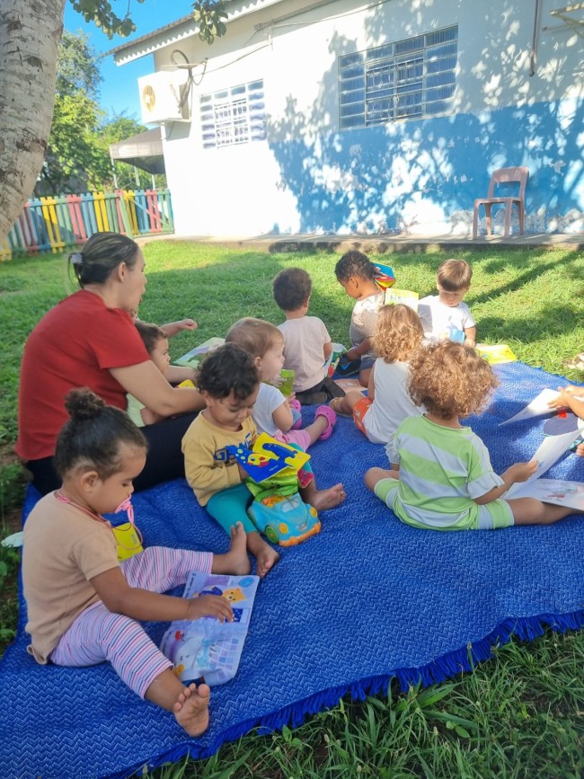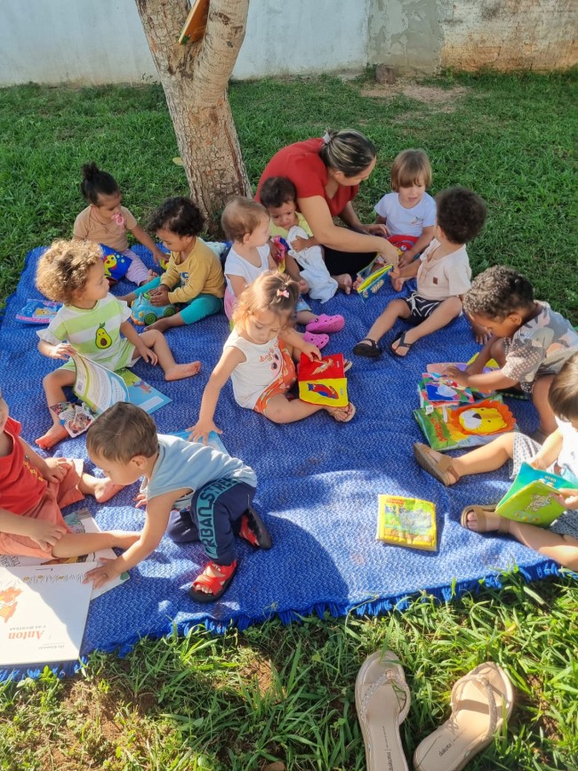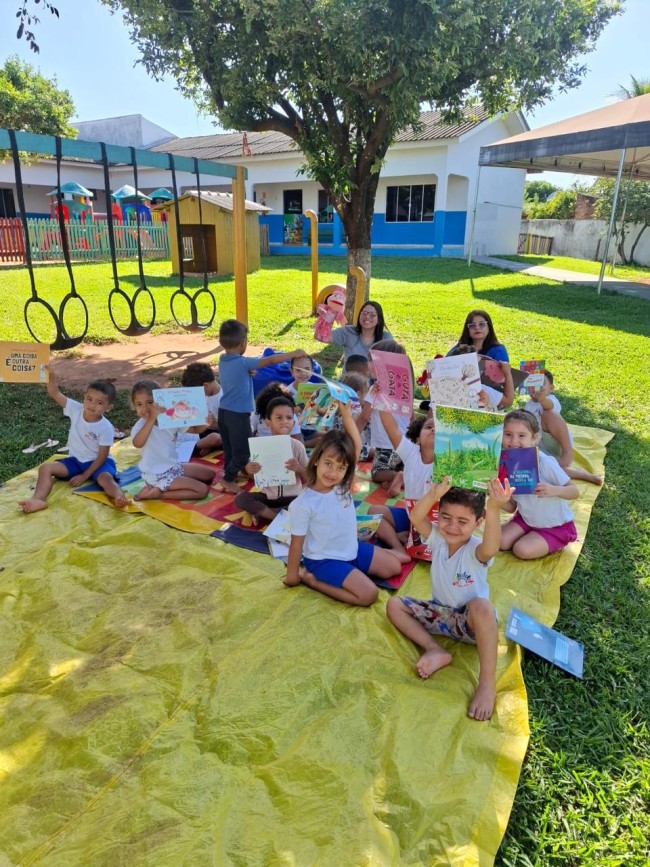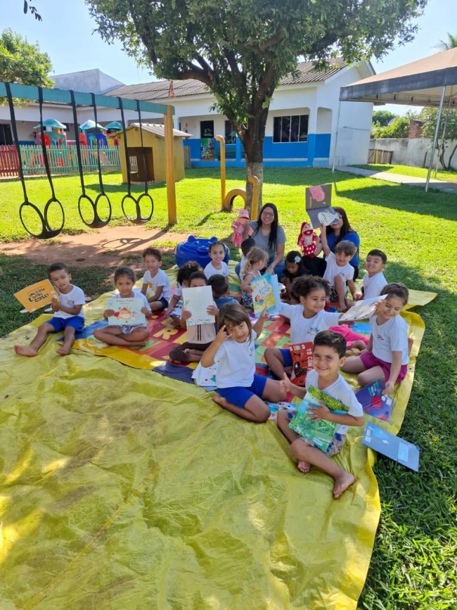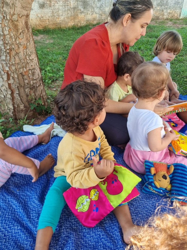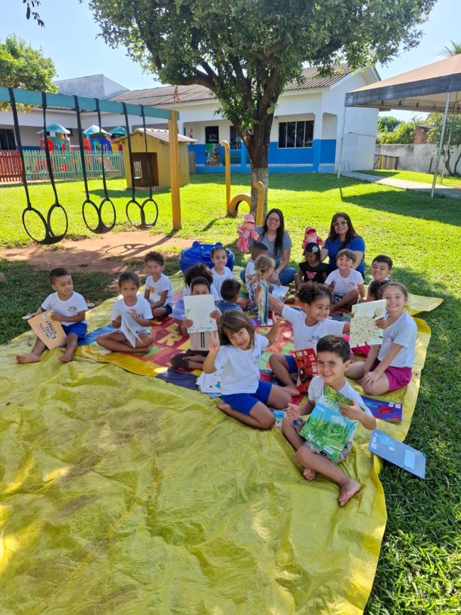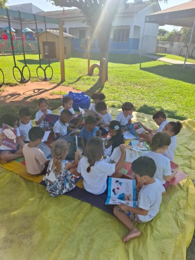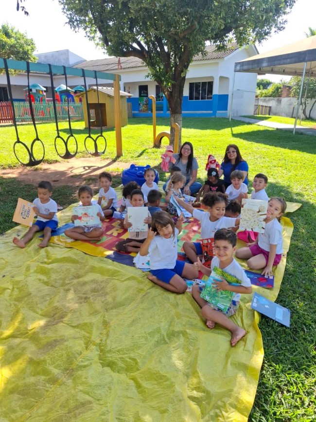 A programação contou ainda com momentos de leitura coletiva no jardim da escola, proporcionando um ambiente acolhedor e diferente da sala de aula tradicional.