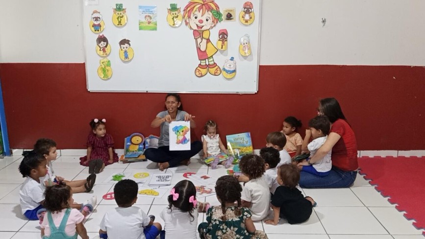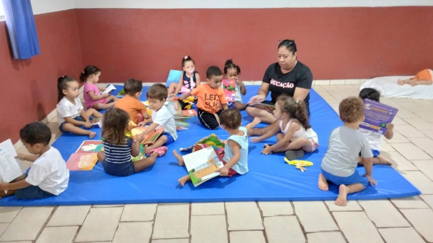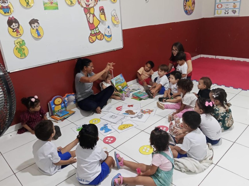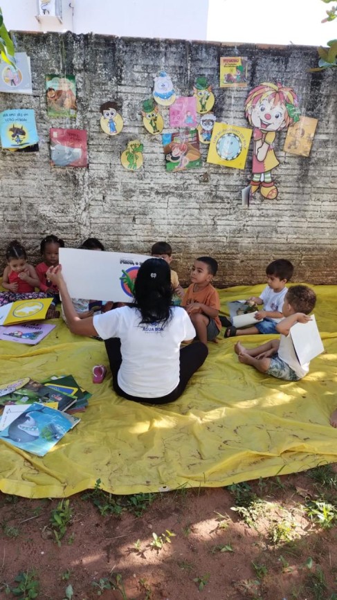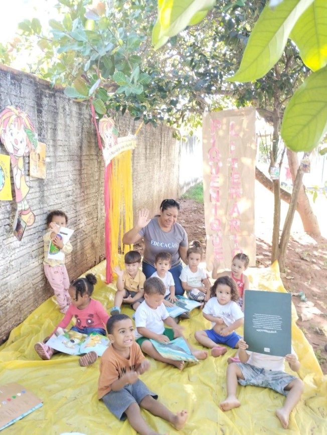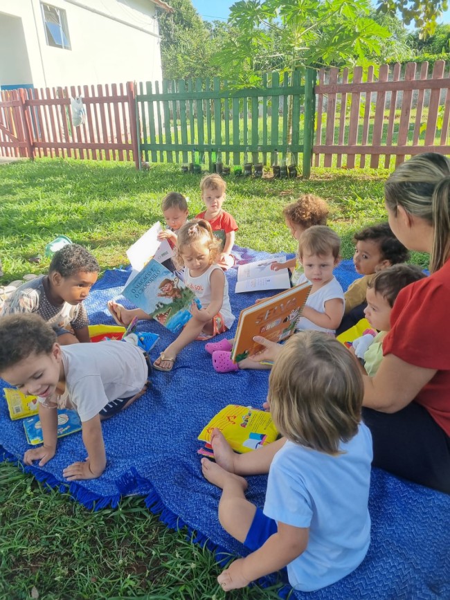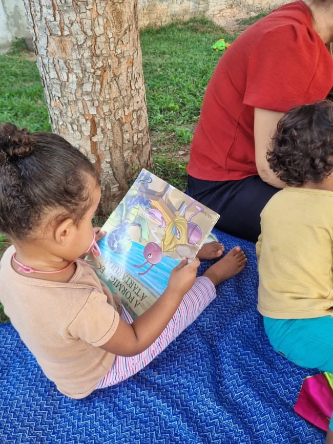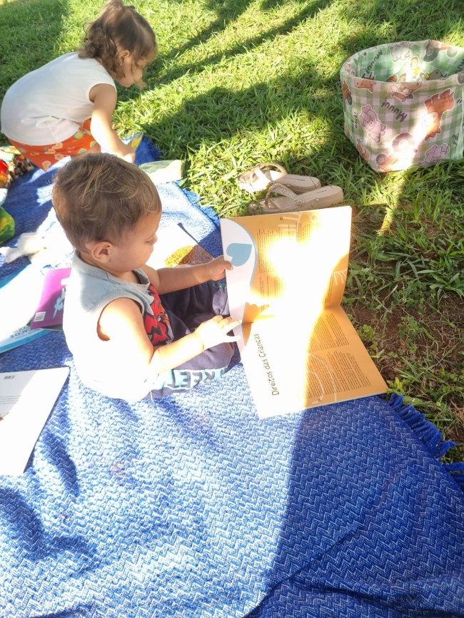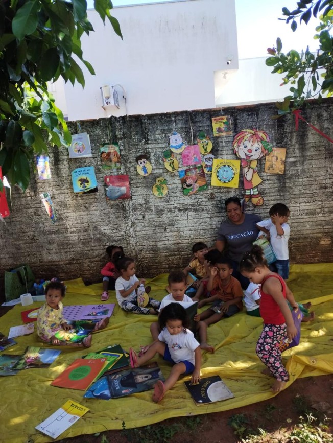 A programação contou ainda com momentos de leitura coletiva no jardim da escola, proporcionando um ambiente acolhedor e diferente da sala de aula tradicional.