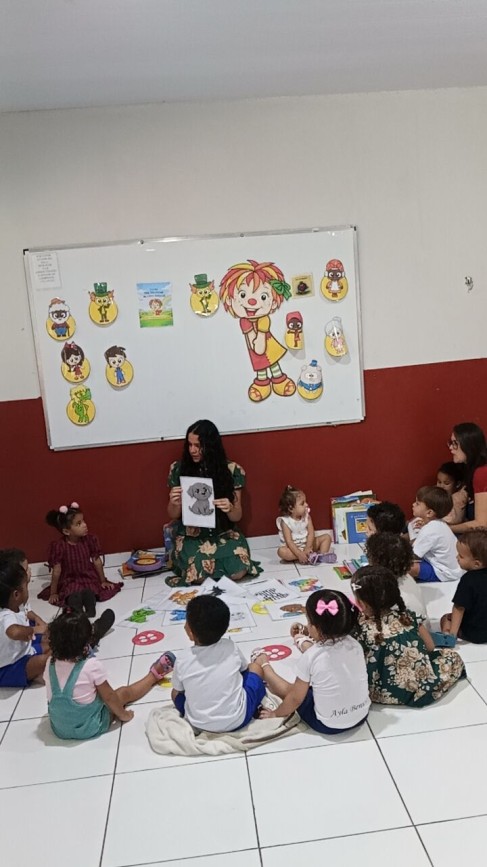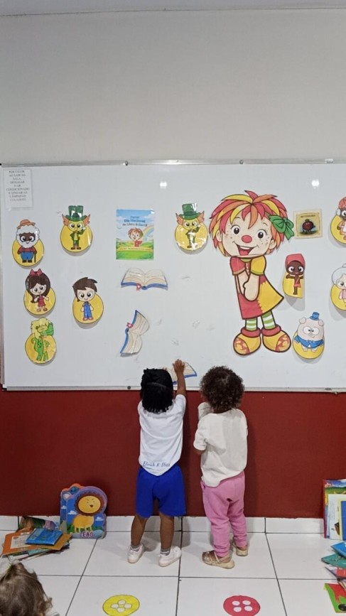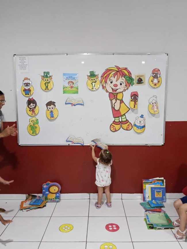 Entre as atividades, os alunos participaram de momentos de contação de histórias, com a presença de personagens clássicos da literatura infantil, como a boneca Emília, encantando e estimulando o interesse pela leitura desde os primeiros anos, em um ambiente carinhosamente decorado com a temática.