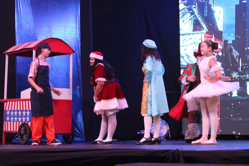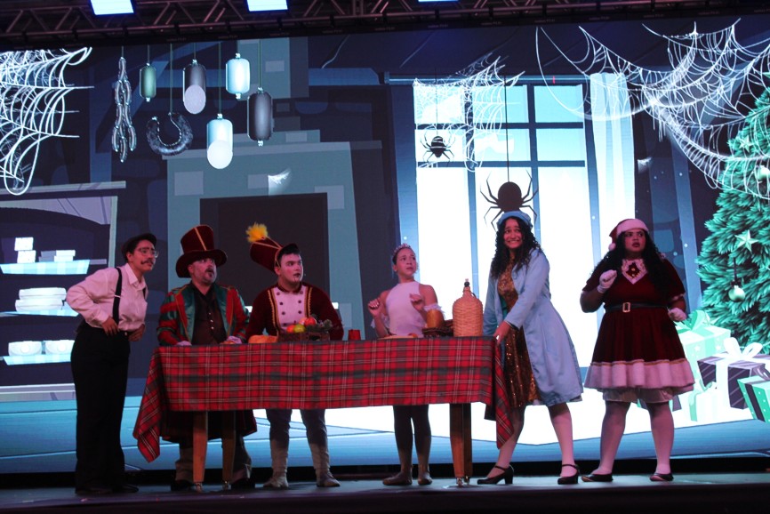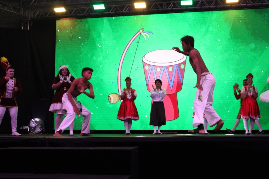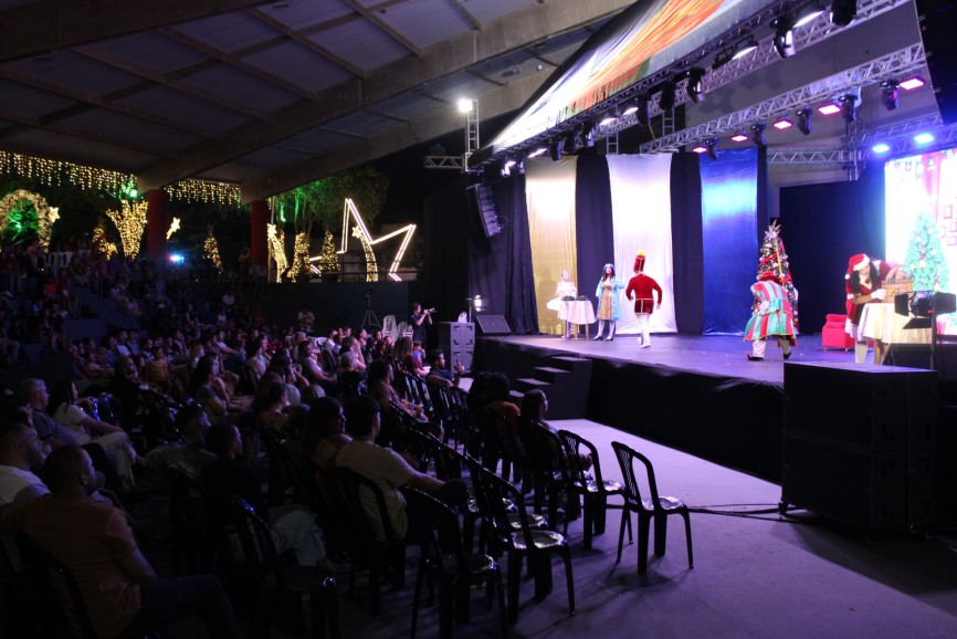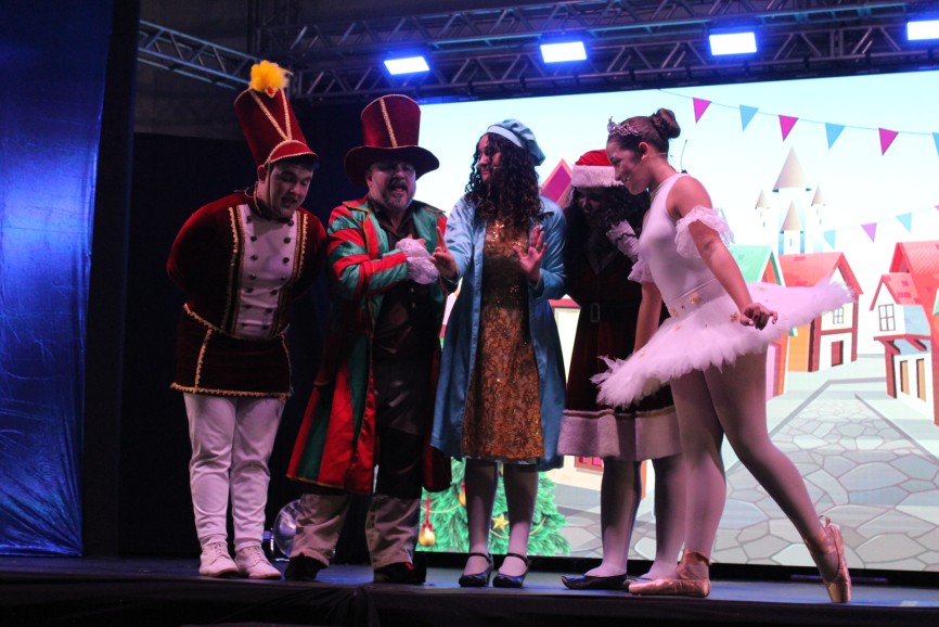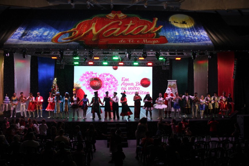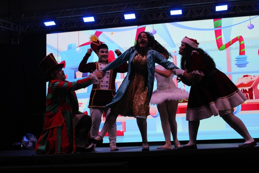 Logo depois, o público embarcou em uma viagem emocionante com o Grupo de Teatro Municipal, que apresentou o espetáculo “Natal Pelo Mundo”, inspirado no tradicional show natalino de Gramado (RS). A história acompanha Sofia, que anos após visitar a Fantástica Fábrica de Natal, agora aos 32 anos, retorna amadurecida, cheia de vivências e novamente acreditando na magia do Natal. Ela reencontra seus amigos da Fantástica Fábrica e compartilha com eles as diferentes tradições natalinas que conheceu em suas viagens ao redor do mundo passando por lugares como a Itália, Rússia, Estados Unidos, Brasil e Alemanha.