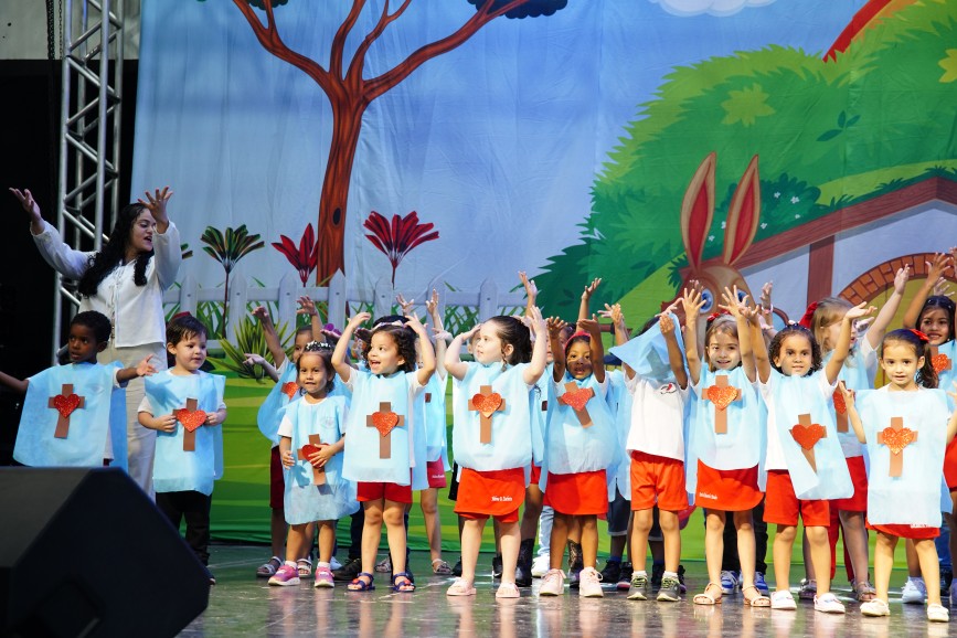 O público presente pôde prestigiar uma programação diversificada, que iniciou com as apresentações das crianças da Escola Municipal de Educação Infantil Jacy Kuhn Salamoni, dos períodos matutino e vespertino, que trouxeram ao palco mensagens de amor e fé.