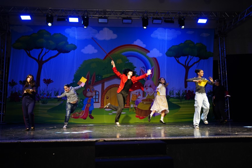 Um dos momentos mais aguardados da noite foi a apresentação do Balé Municipal das professoras Laura e Ludmila que levou ao palco o espetáculo “A Fantástica Fábrica de Chocolate”, surpreendendo o público com criatividade, beleza, talento e reafirmando a qualidade artística presente no município.