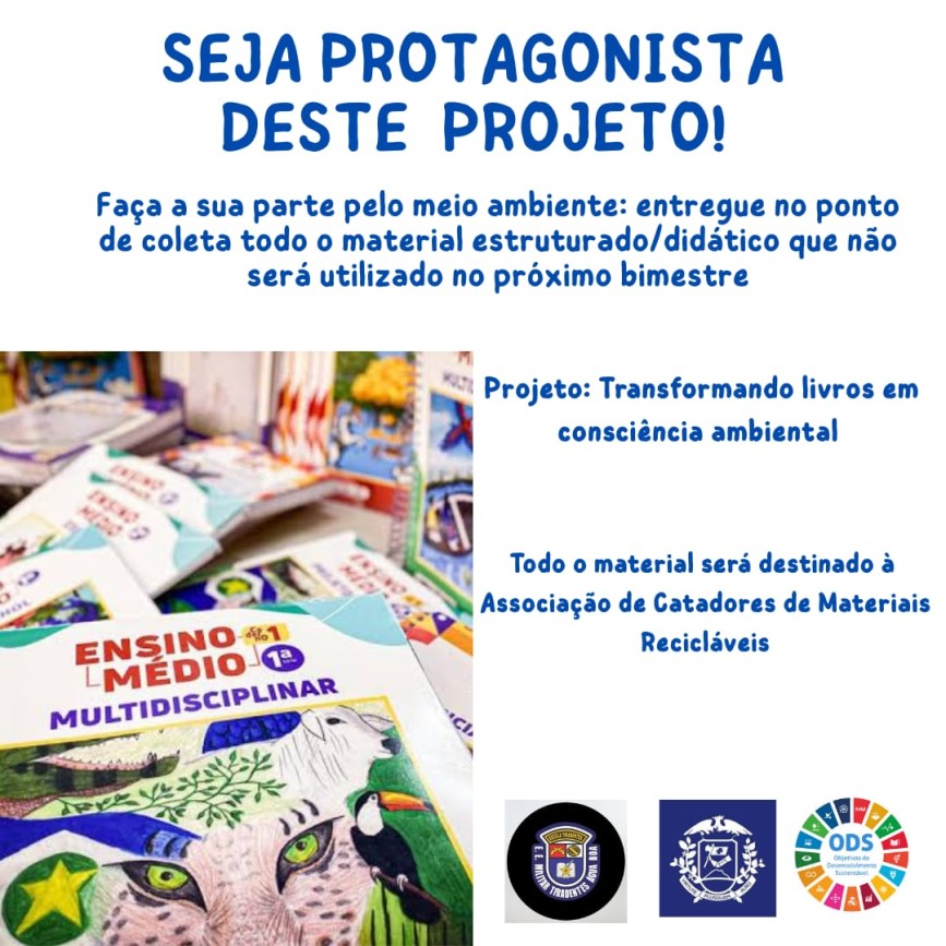 A proposta incentiva os estudantes a refletirem sobre o destino correto dos materiais didáticos utilizados durante o ano letivo. Ao final de cada bimestre, os alunos são convidados a descartar os materiais estruturados em pontos de coleta instalados na própria escola. Todo o conteúdo arrecadado é encaminhado à Associação de Catadores de Materiais Recicláveis de Água Boa, contribuindo diretamente para a cadeia da reciclagem no município.