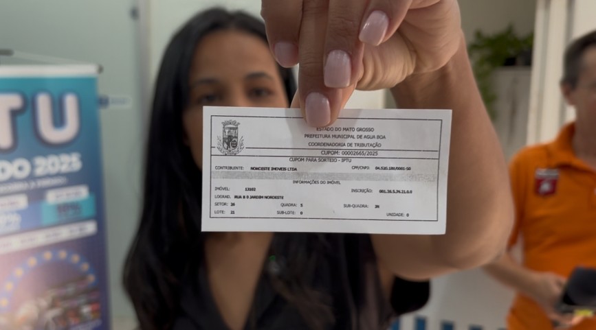 Na tarde desta quarta-feira (30), Água Boa acompanhou com entusiasmo a Live do Sorteio do IPTU Premiado 2025, transmitida ao vivo pelas redes sociais da Prefeitura. O evento foi um marco de transparência e interação, trazendo novidades para quem realizou o pagamento do IPTU até o dia 15 de abril e garantiu 35% de desconto. A vencedora é a Glacieli Del Colle Pinto, residente na Rua B, Jardim Noroeste, lote 21.