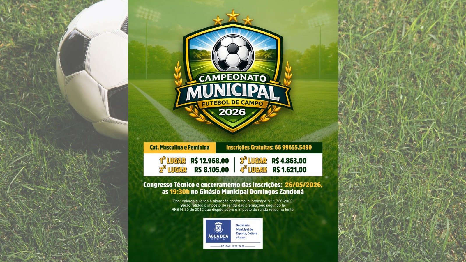 Prefeitura Municipal de Água Boa - MT Av. Planalto nº 410 - Centro. CEP: 78635-000 / Fone: (66) 3468-6400 / 0800 646 5001 Horário de Atendimento: Segunda a Sexta 07:30 às 11:30 / 13:30 às 17:30 - Todos os direitos reservados. |