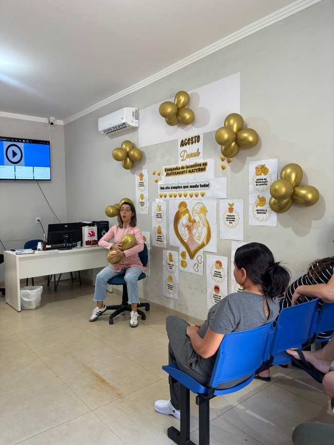 A enfermeira gestora da unidade, Patrícia Torres, abriu o encontro falando sobre os inúmeros benefícios da amamentação tanto para o bebê quanto para a mãe. Ela demonstrou o posicionamento correto do bebê para mamar, explicou a importância do esvaziamento mamário para que o bebê receba todas as fases do leite materno e reforçou a necessidade de uma rede de apoio para a lactante, envolvendo companheiros, familiares e amigos.