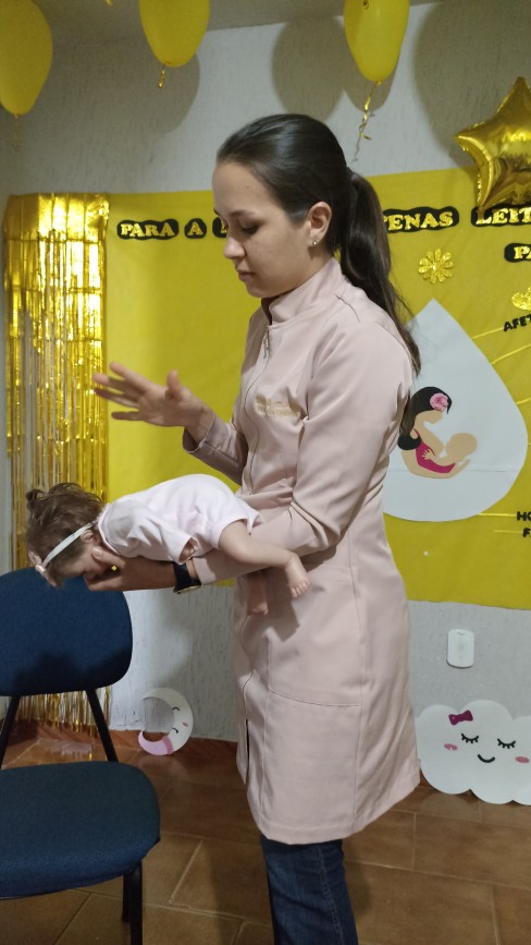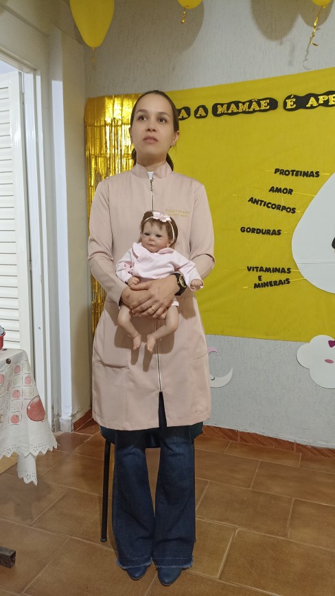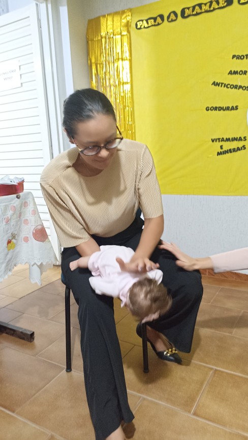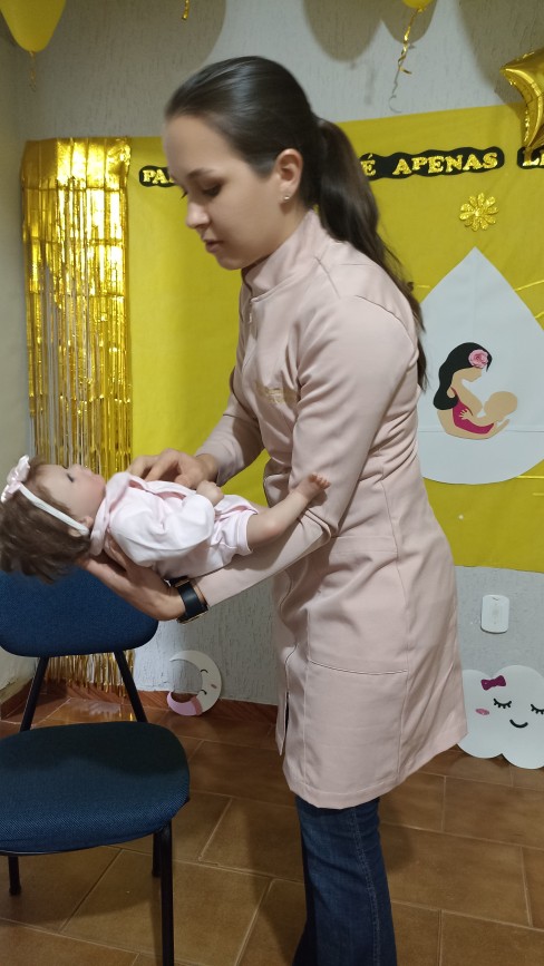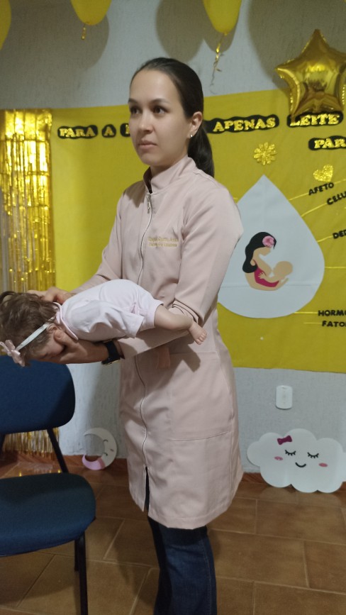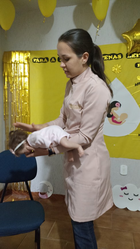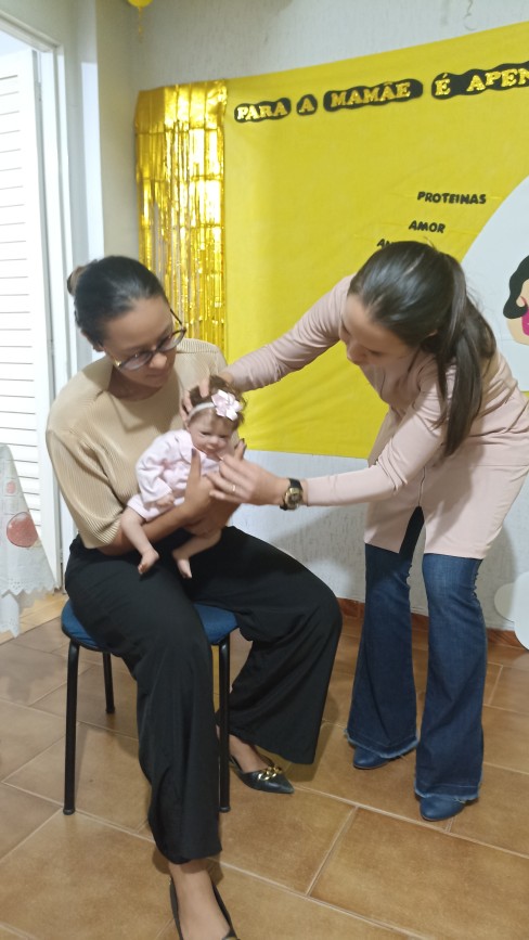 A atividade foi conduzida pela enfermeira convidada Raquel Sturm, que compartilhou informações essenciais sobre amamentação. Entre os temas abordados, destacou-se a posição correta para a mamada, a pega ideal — que evita feridas no seio materno e garante que o bebê fique bem alimentado e sem desconfortos como gases — além da importância do leite materno como alimento exclusivo até os seis meses de vida, sem a necessidade de oferecer água ou chás. A profissional também ensinou manobras de desengasgo, ampliando os conhecimentos das participantes sobre primeiros cuidados com o bebê.