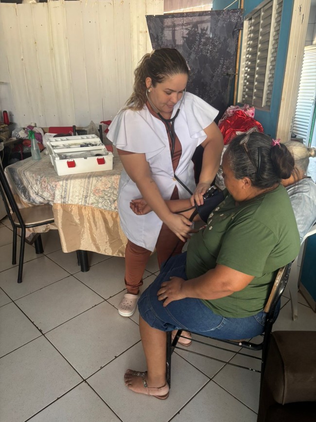 Nesta quarta-feira (3), a equipe da Estratégia Saúde da Família (ESF) Vila Nova realizou mais uma ação de atendimento domiciliar, voltada a pacientes acamados, domiciliados e com comorbidades. A atividade contou com a presença de um médico, uma enfermeira e uma Agente Comunitária de Saúde (ACS), reafirmando o compromisso da saúde municipal com um cuidado universal e humanizado.