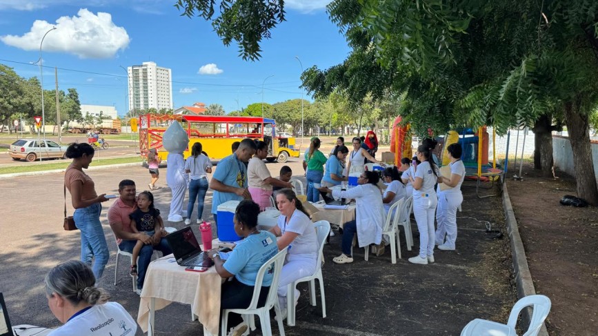 A ação foi realizada no estacionamento ao lado da UPAM e contou com um ambiente acolhedor para as famílias, incluindo brinquedos para as crianças que estavam com a vacinação em dia, tornando o momento ainda mais especial e incentivando a imunização infantil.