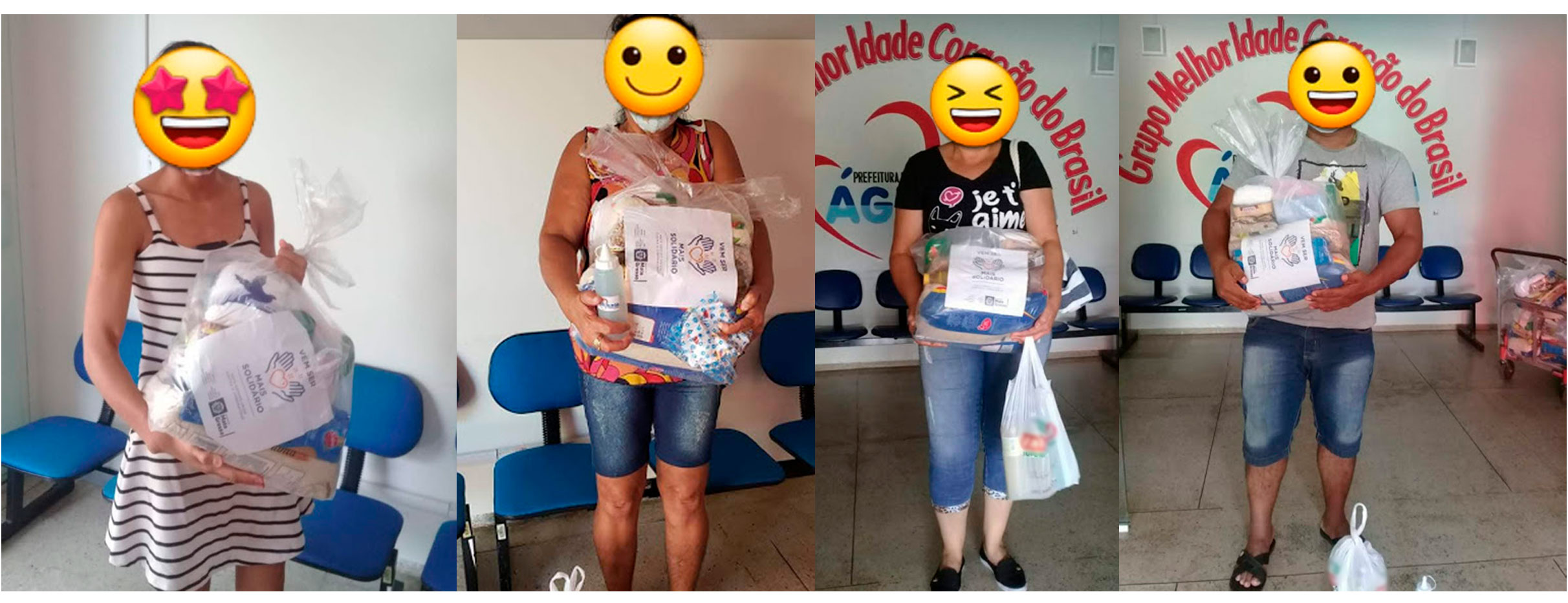 As cestas foram arrecadadas de formas diferentes: algumas compradas pela Secretaria de Assistência Social, outras doadas pela população, e também por empresas e instituições.