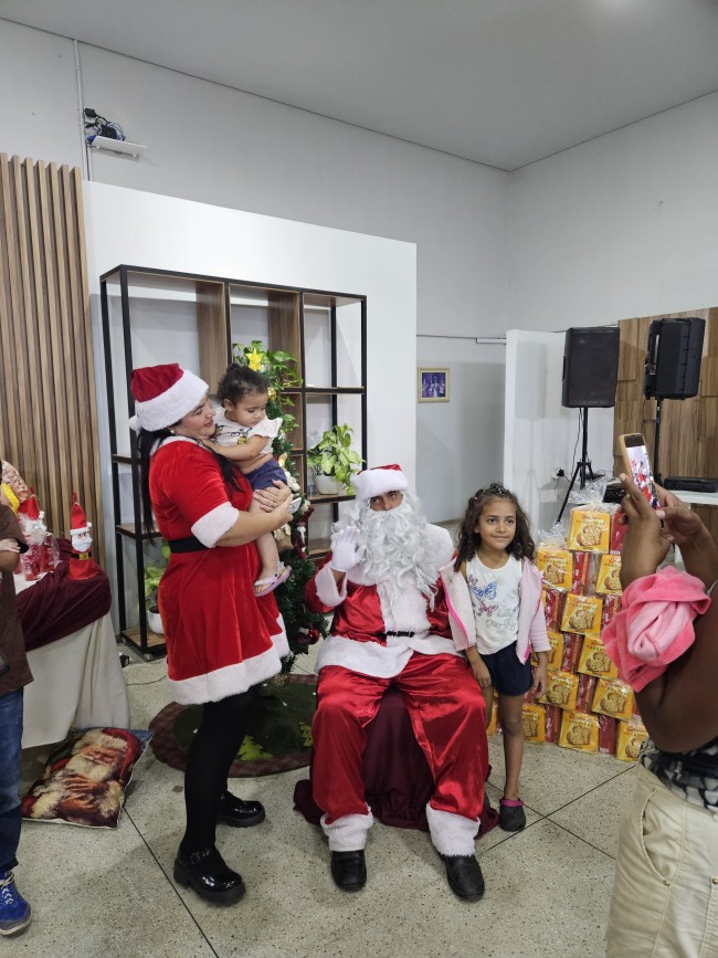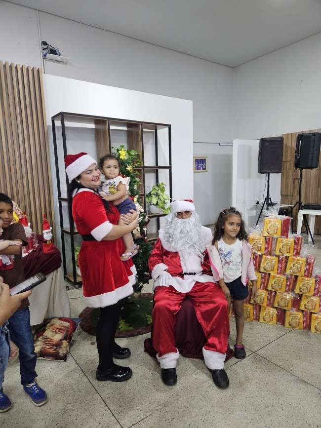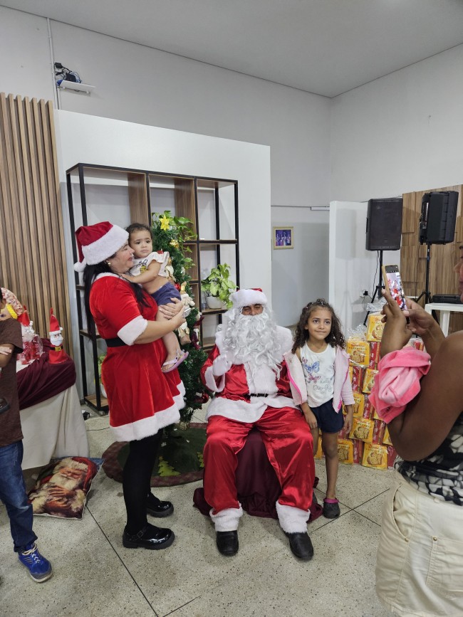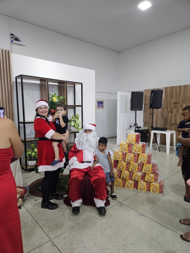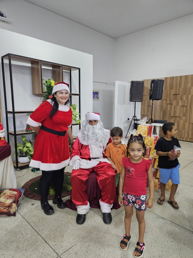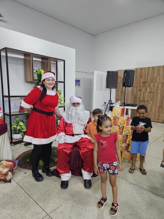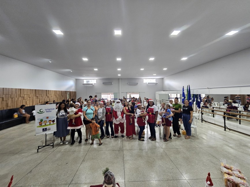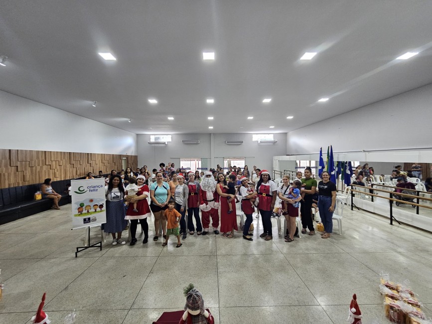 O Programa Criança Feliz (PCF) realizou seu encerramento com uma tarde especial para as crianças e suas famílias, no salão da Secretaria de Assistência Social, nesta segunda-feira (9). O evento contou com a presença do Papai e Mamãe Noel, que espalharam magia e encanto entre os pequenos. Cada criança presente recebeu um mimo com guloseimas, trazendo alegria e entusiasmo à celebração.