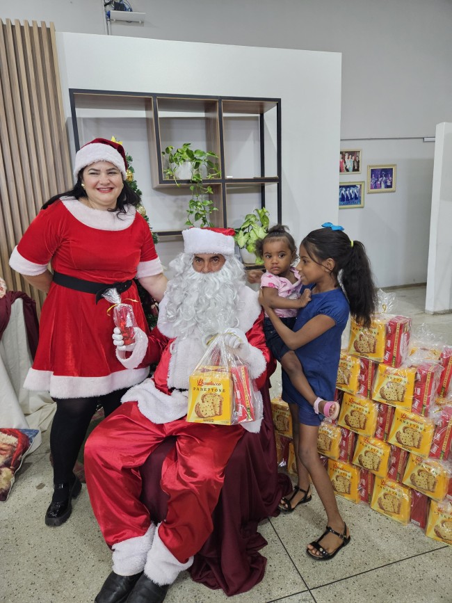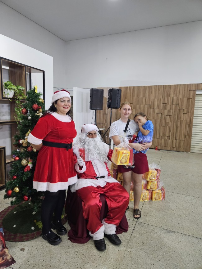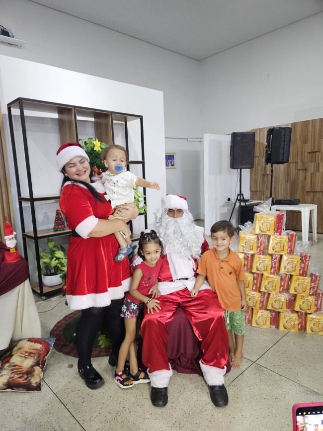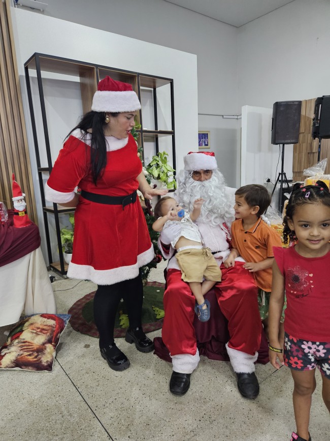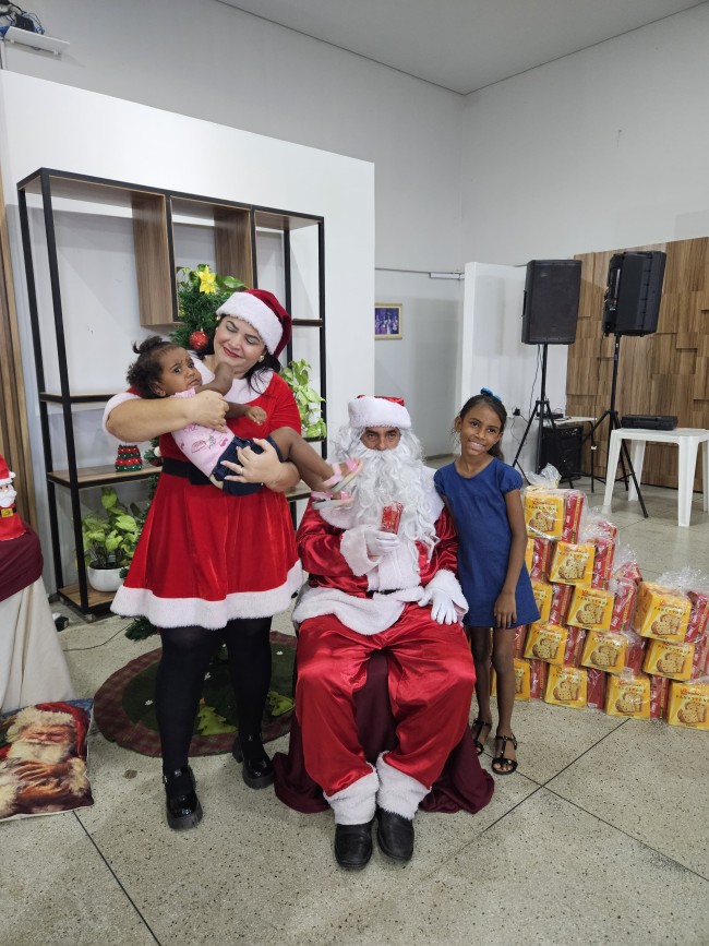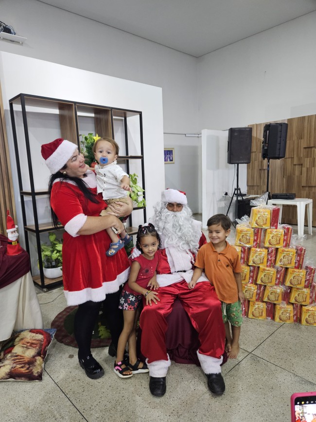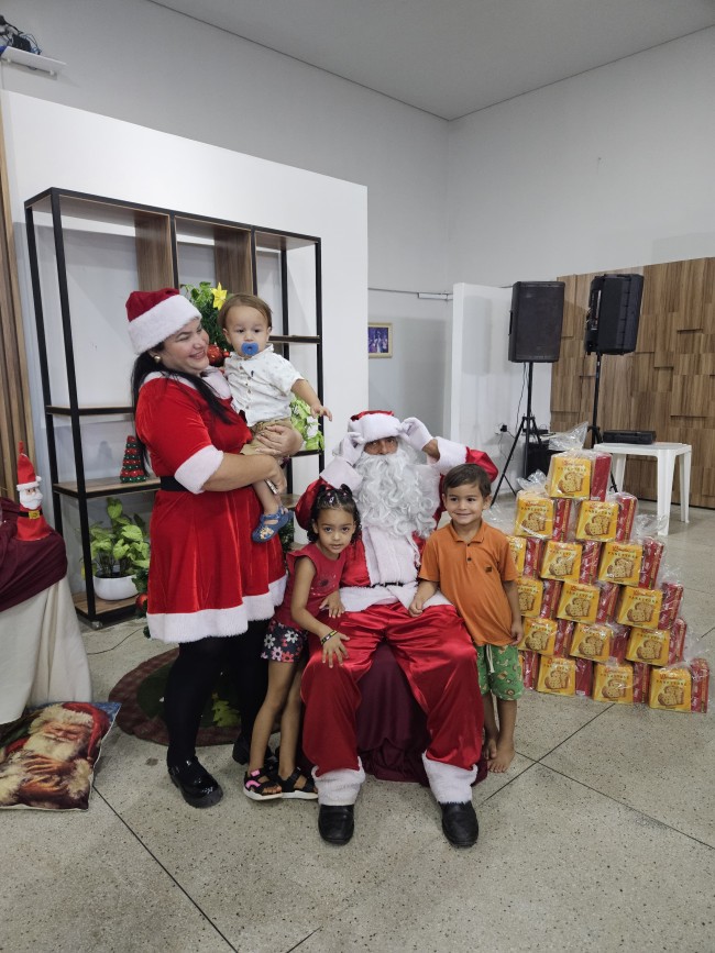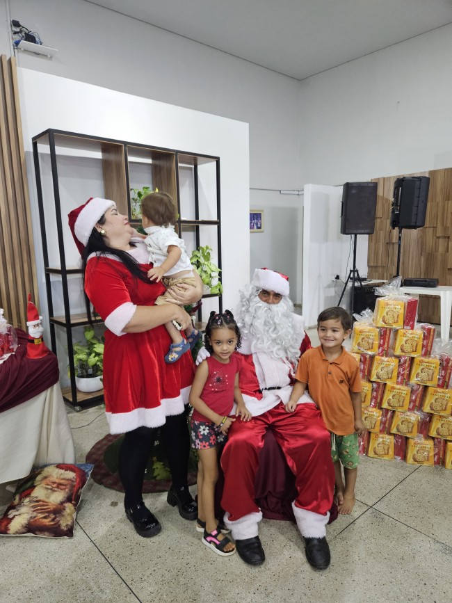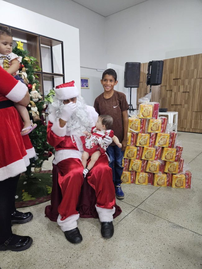O Programa Criança Feliz (PCF) realizou seu encerramento com uma tarde especial para as crianças e suas famílias, no salão da Secretaria de Assistência Social, nesta segunda-feira (9). O evento contou com a presença do Papai e Mamãe Noel, que espalharam magia e encanto entre os pequenos. Cada criança presente recebeu um mimo com guloseimas, trazendo alegria e entusiasmo à celebração.