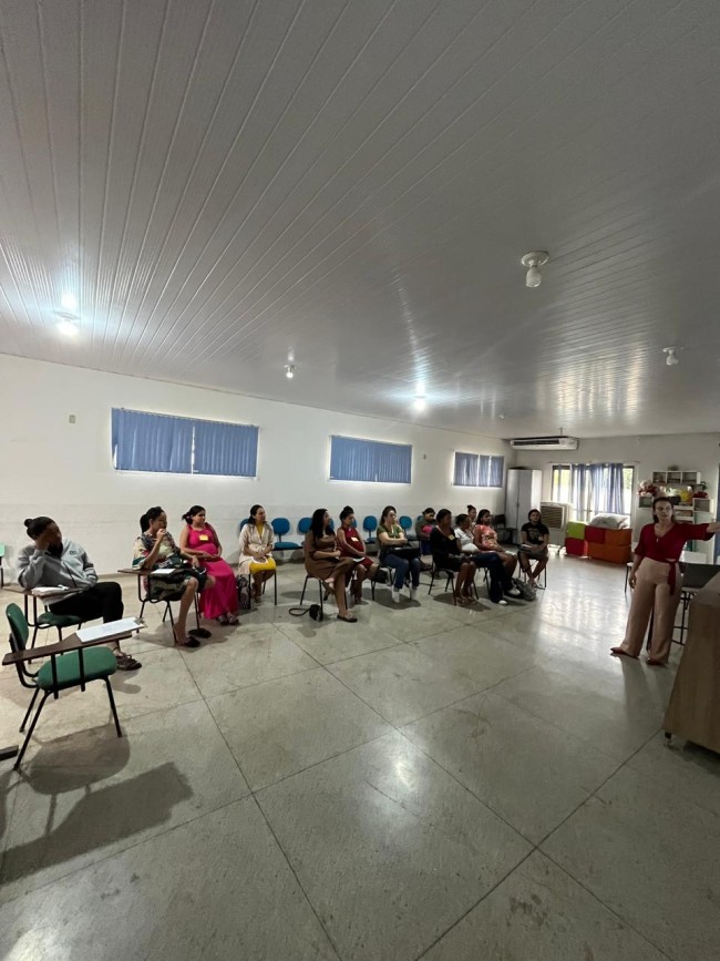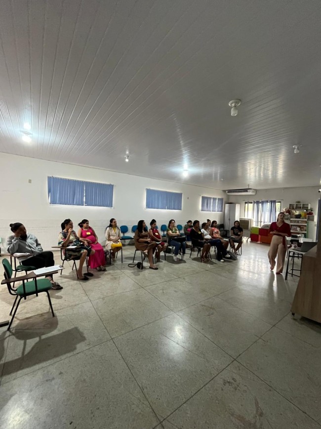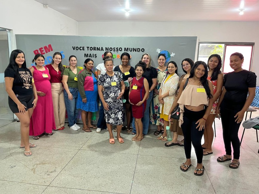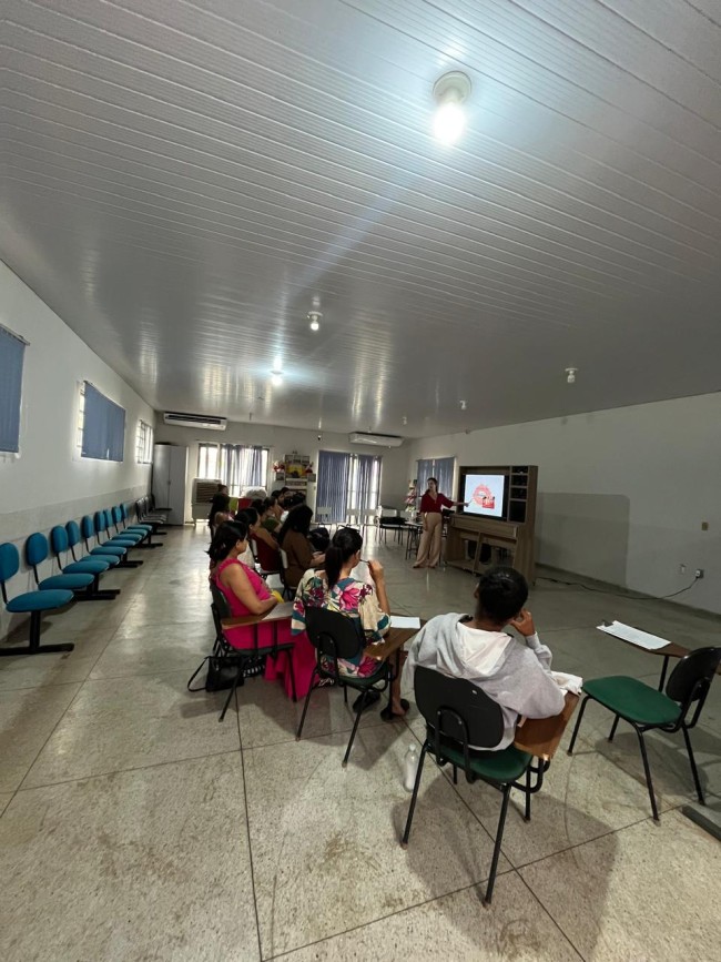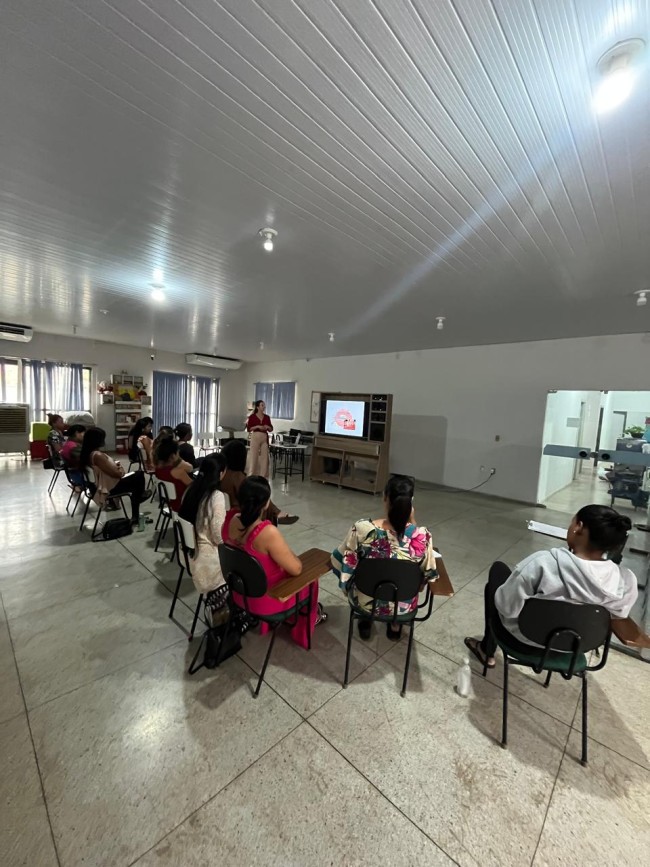 No encontro desta segunda-feira (15), as gestantes atendidas pelo programa Cantinho da Cegonha, da Secretaria de Assistência Social e Cidadania, participaram de uma roda de conversa com a odontopediatra Juliane Ceolin Facio, da Secretaria Municipal de Saúde.