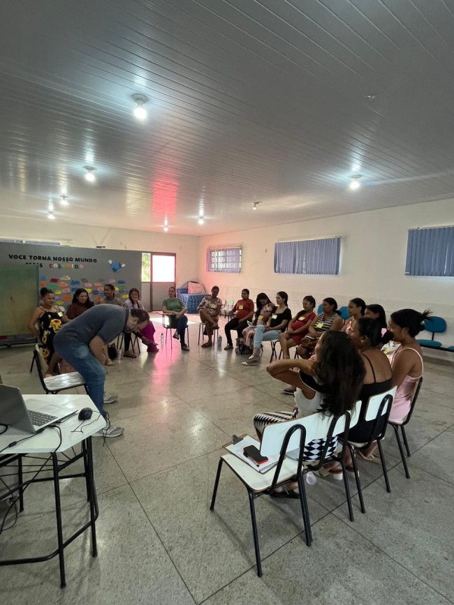 Nesta segunda-feira (22), a Secretaria de Assistência Social e Cidadania de Água Boa realizou mais um encontro do projeto Cantinho da Cegonha, voltado ao acolhimento e orientação de gestantes do município. A atividade da semana contou com a participação especial do psicólogo Anderson Karnopp, que conduziu uma roda de conversa sobre as emoções que envolvem a gestação.