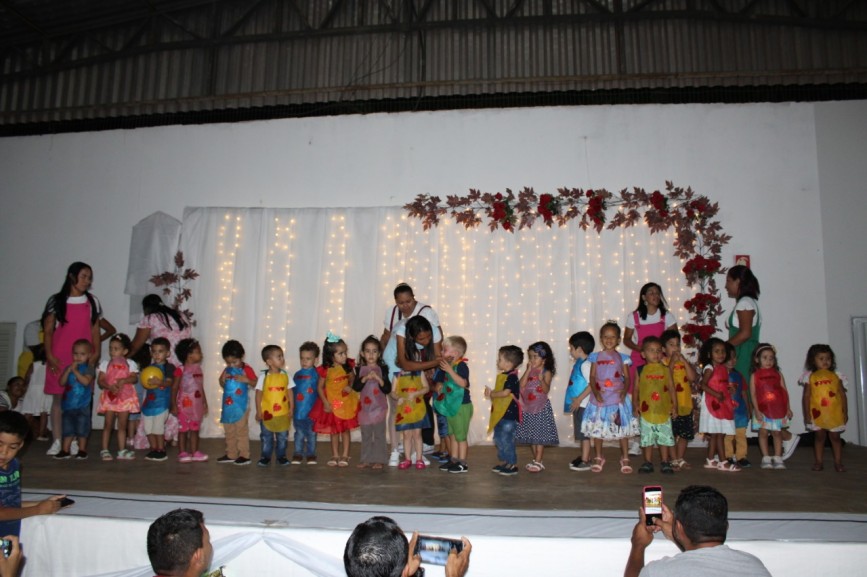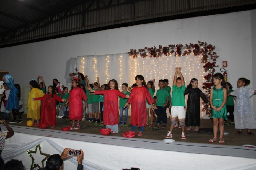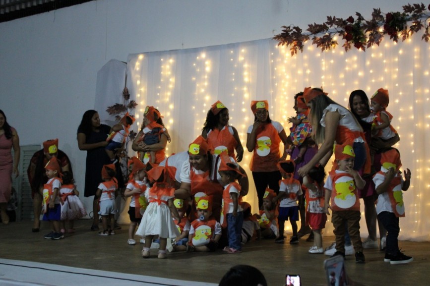 A turminha do Jardim Integral e Parcial das professoras Luana Luzia, Claudia, Leidiane e Hanny, apresentaram a música Batam Palmas, enfatizando a alegria e o sorriso das crianças.