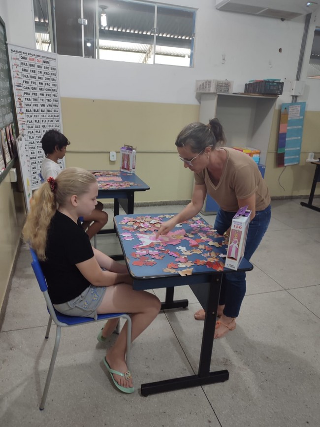 A professora Cassia Fernanda que trabalha com crianças assistidas na sala do AEE (Atendimento Educacional Especializado) ressaltou que este projeto foi criado em virtude da quantidade de alunos com déficit de atenção encaminhados para tal atendimento. E uma das atividades que contribui para isso é o quebra-cabeça, uma vez que estimula o cérebro, é bom para a memória, facilita muito a aprendizagem e acaba gerando benefícios para as crianças de diferentes idades.