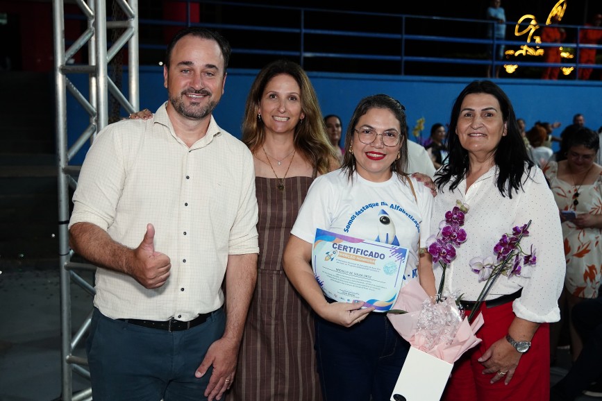 Outro destaque foi a premiação de professores do 5º ano com o Selo Diamante, reconhecimento concedido às equipes educacionais que alcançam alto desempenho no processo de alfabetização e aprendizagem.