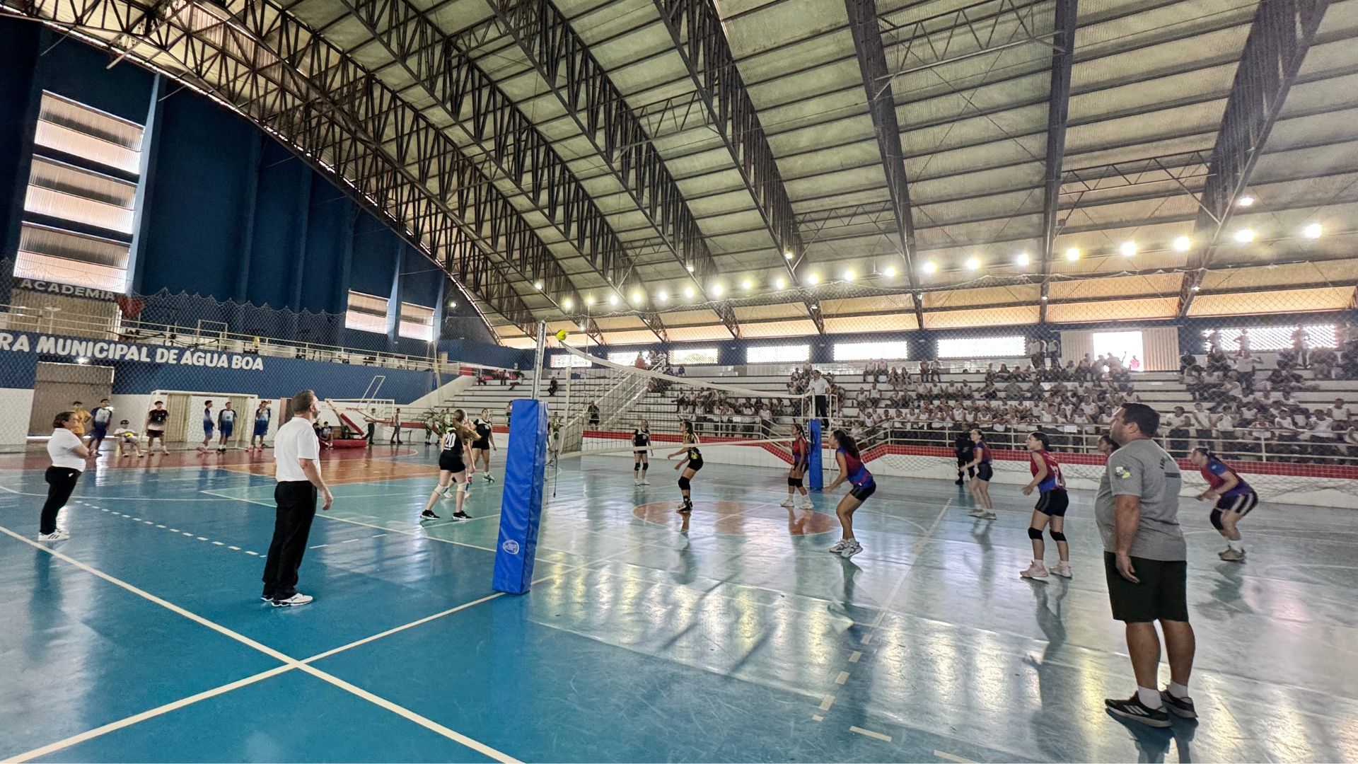 Após o feriado, os Jogos Escolares e Estudantis de Água Boa foram retomados com grande movimentação na manhã desta quarta-feira (22), no Ginásio de Esportes Domingos Zandoná. As finais do voleibol, nas categorias feminina A e B e masculina A, marcaram o retorno das competições, reunindo atletas, equipes escolares e muitos torcedores.