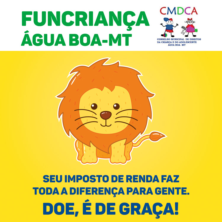 Durante a realização da Declaração do Imposto de Renda Pessoa Física (DIRPF) no modelo completo ainda é possível realizar a destinação da pessoa física de até 6% do imposto devido ao Funcriança (Fundo da Criança e do Adolescente) de Água Boa/MT.