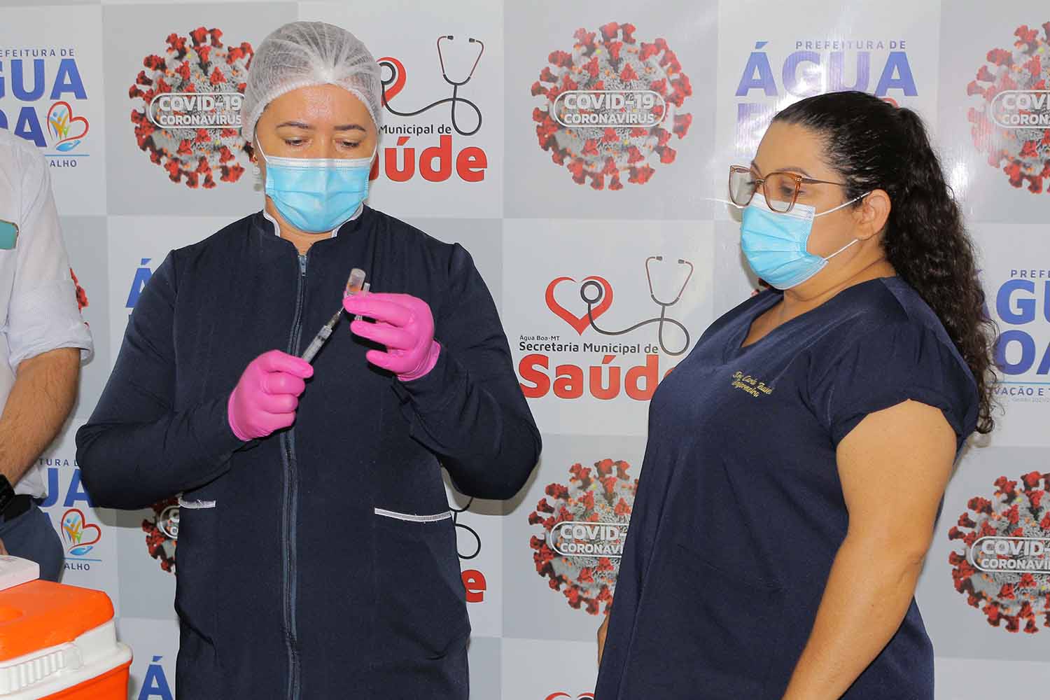 A primeira dose da vacina contra o covid-19 (Coronavac), foi aplicada hoje (quinta-feira) por volta das 10:00hs da manhã, no Centro de Imunização Carlos Cesar Gomes, anexo ao Centro Municipal de Saúde de Água Boa.