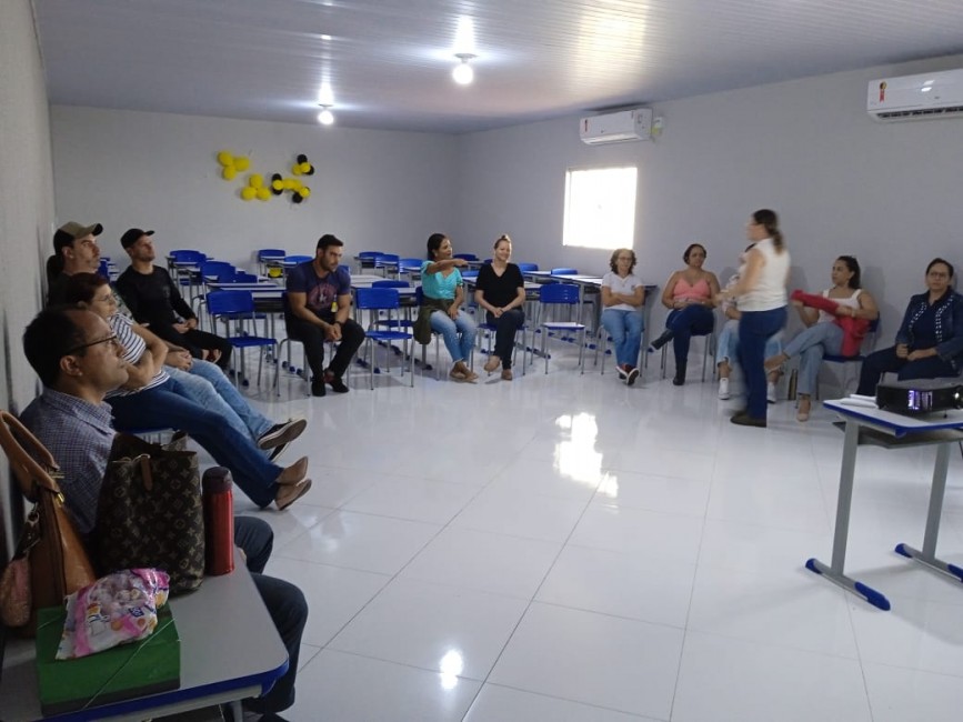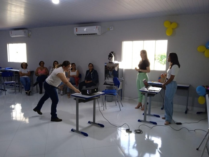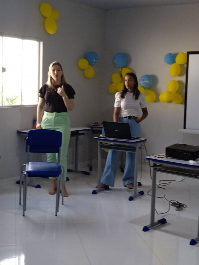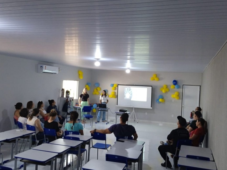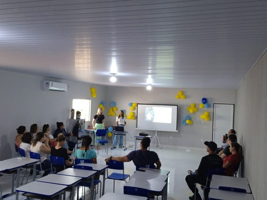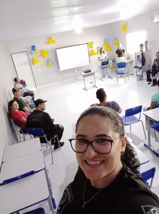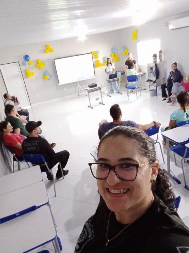 As psicólogas Karine de Araújo e Polyana Bohrz Giacomolli, da Secretaria Municipal de Saúde de Água Boa, realizaram uma roda de conversa com os trabalhadores do sistema prisional tendo como tema principal a importância do cuidado com a saúde mental.