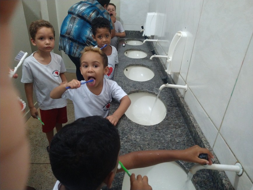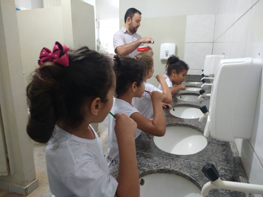 Todos os alunos foram acompanhados durante a escovação, e aprenderam sobre a quantidade de pasta adequada, os movimentos corretos, a importância da escovação da língua e de realizar a escovação no mínimo três vezes ao dia, principalmente antes de dormir para manter a saúde.
