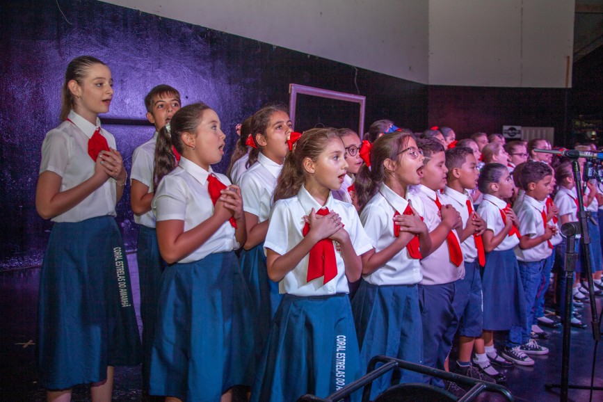 O público também teve a oportunidade de refletir sobre o amor de Deus com as canções do Coral “Estrelas do Amanhã”, composto por alunos do Colégio Jesus Maria José (JMJ).