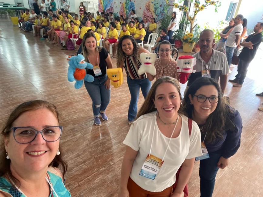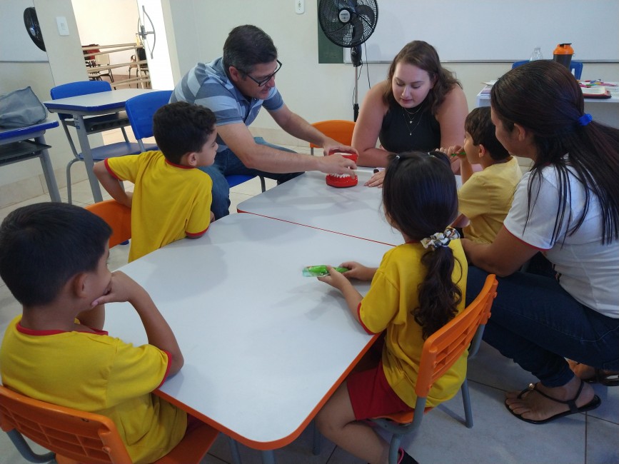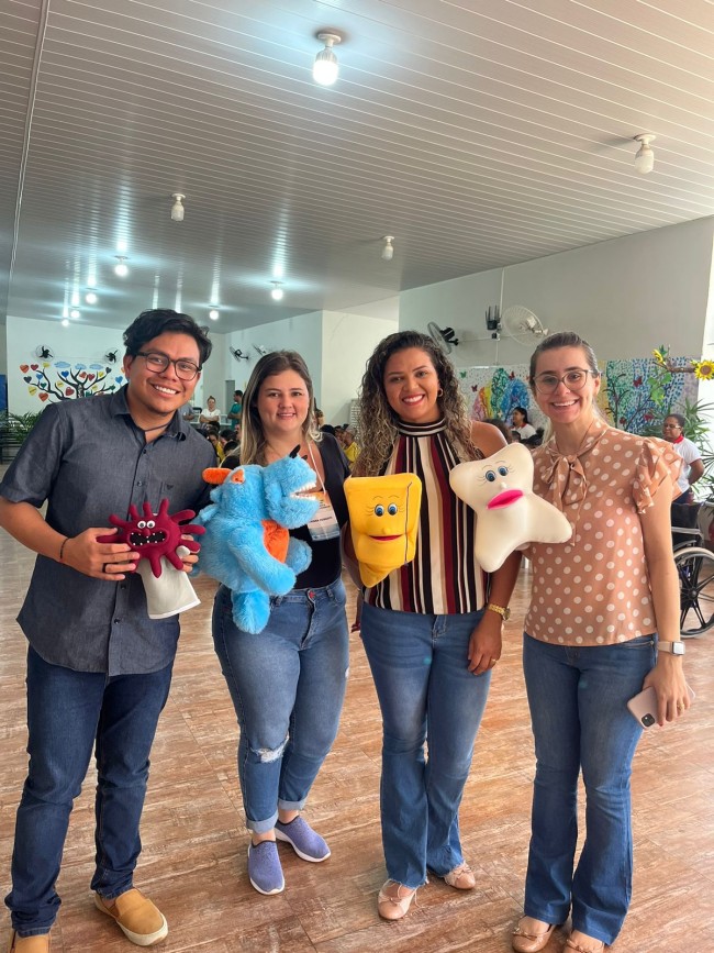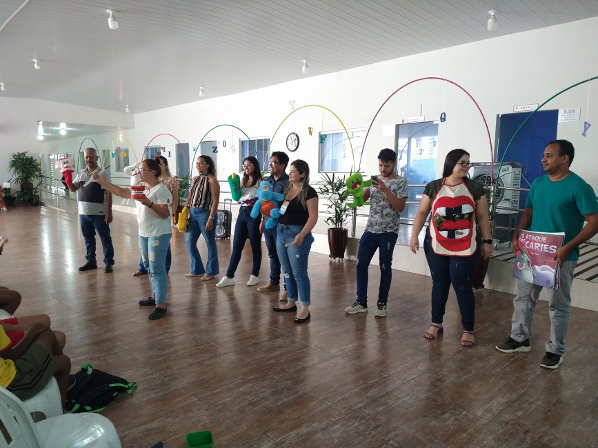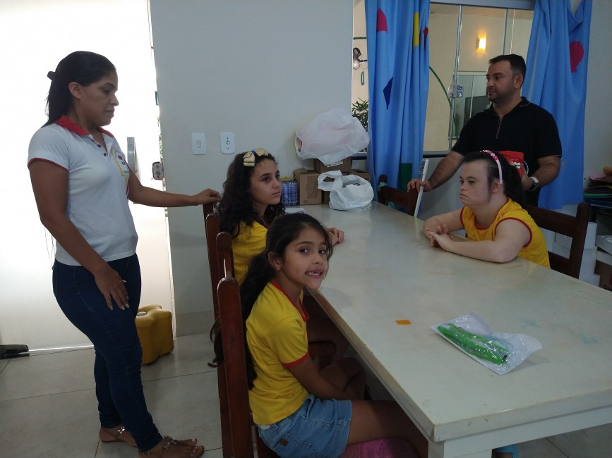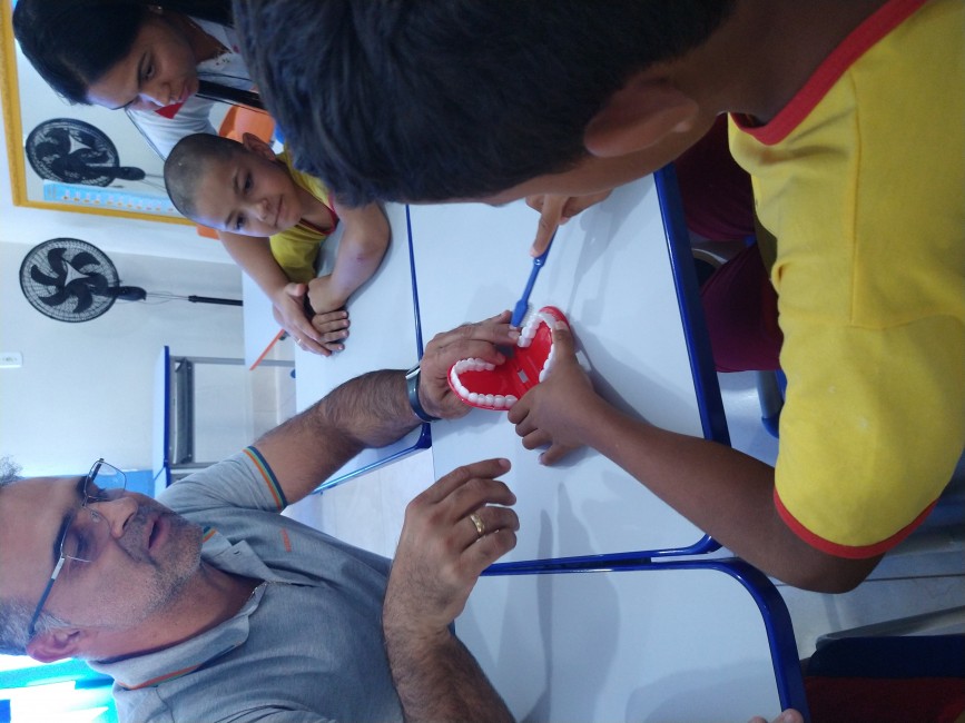 No trabalho desenvolvido na Pestalozzi, durante a manhã e tarde, os 20 profissionais que estão participando da capacitação ensinaram, de forma lúdica, a importância da escovação, apresentando um teatro de fantoches, música com a demonstração da escovação correta e a supervisão da escovação dos alunos.