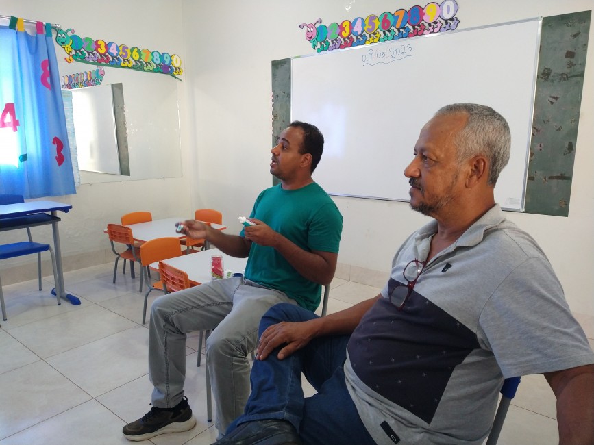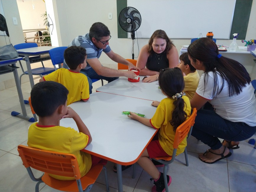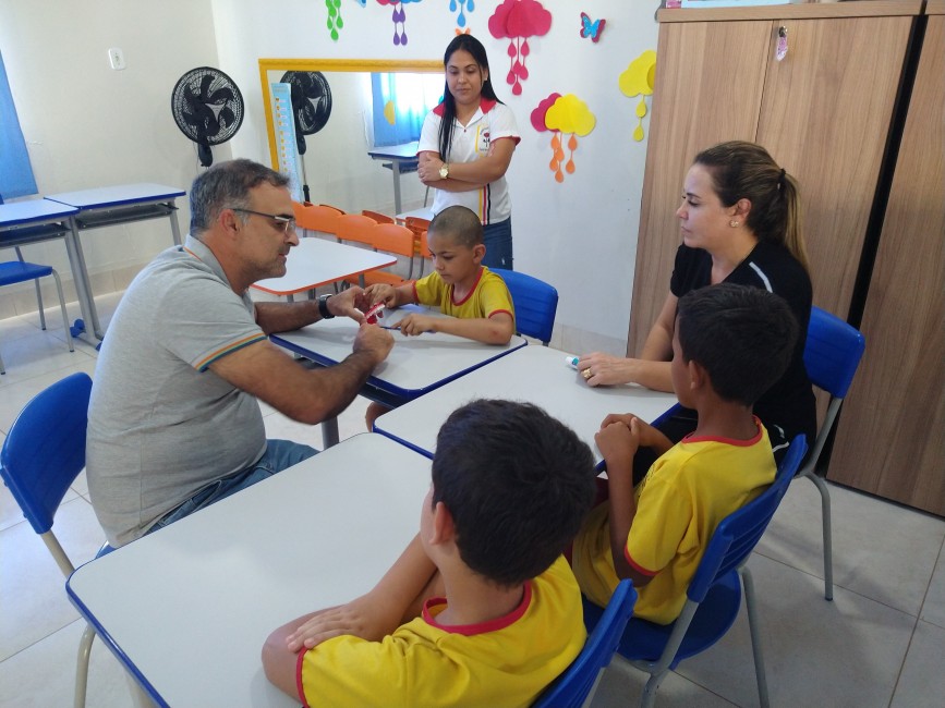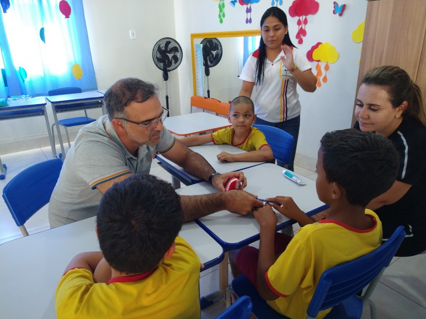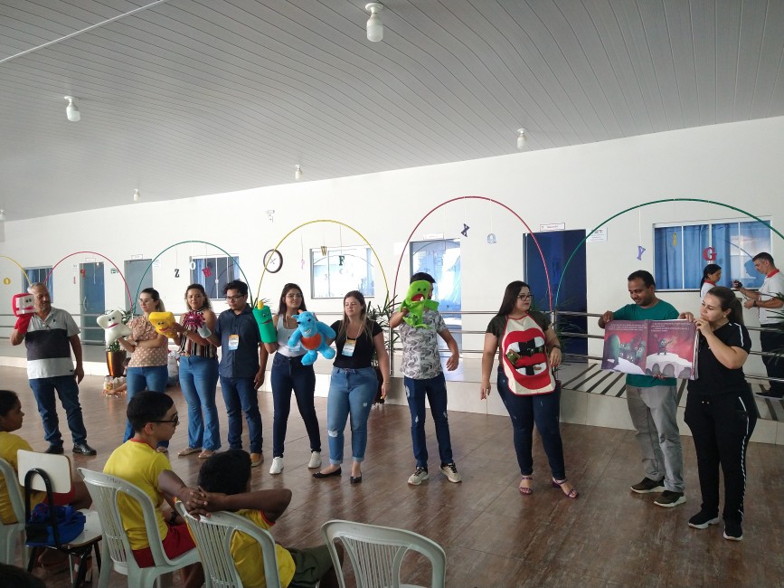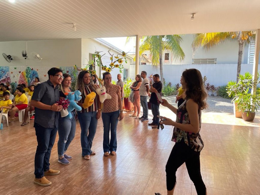 No trabalho desenvolvido na Pestalozzi, durante a manhã e tarde, os 20 profissionais que estão participando da capacitação ensinaram, de forma lúdica, a importância da escovação, apresentando um teatro de fantoches, música com a demonstração da escovação correta e a supervisão da escovação dos alunos.