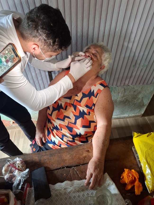 Na tarde desta quarta-feira (24), mais uma visita domiciliar foi realizada pela equipe de saúde da ESF Vila Nova. Participaram da ação o cirurgião-dentista Muryel, a auxiliar de consultório dentário (ACD) Eliene e as Agentes Comunitárias de Saúde (ACS) Aline e Joceli.