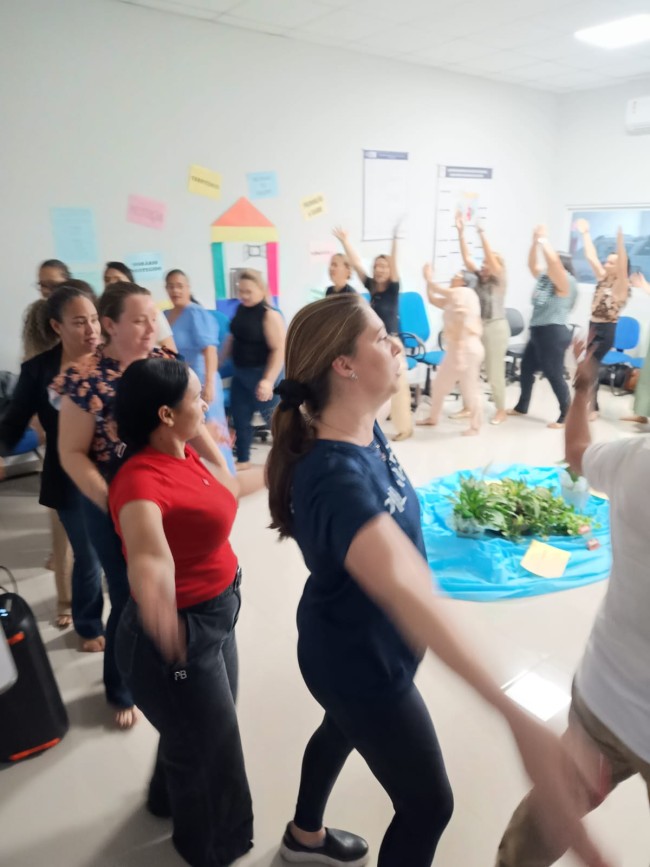 O tema “Viver em Equipe” destacou a importância da cooperação, da comunicação e das práticas interprofissionais na Atenção Primária. O encontro contou com dinâmicas de integração, rodas de conversa, vivências de Terapia Comunitária Integrativa (TCI) e práticas de autocuidado e PICS (Práticas Integrativas e Complementares em Saúde).