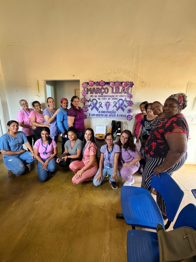 Durante o mês de março, a Prefeitura de Água Boa, por meio da Secretaria Municipal de Saúde, promoveu diversas ações nas unidades da Estratégia Saúde da Família (ESF) em alusão ao Março Lilás, campanha dedicada à prevenção e ao diagnóstico precoce do câncer do colo do útero.