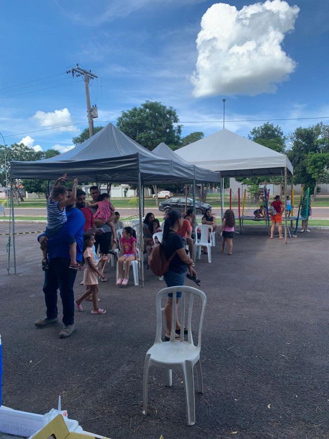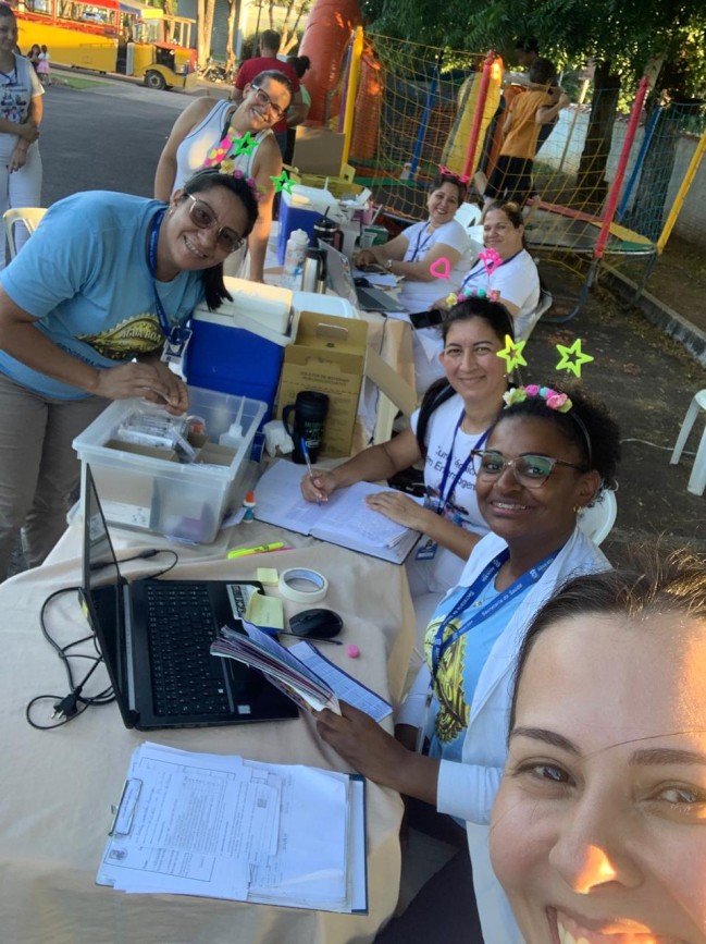 A ação foi realizada no estacionamento ao lado da UPAM e contou com um ambiente acolhedor para as famílias, incluindo brinquedos para as crianças que estavam com a vacinação em dia, tornando o momento ainda mais especial e incentivando a imunização infantil.