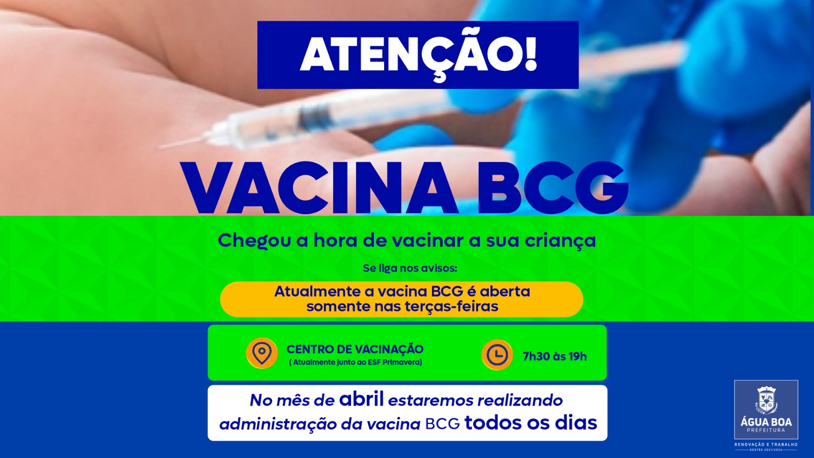 Saúde de Água Boa fará dia D da vacinação contra a gripe no sábado (13) Tener Baumgardt | Ascom Saúde 09 Abril 2024